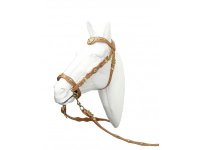 A cabeçada de Meia Cortesia tem a testeira e focinheira trabalhadas e com uma forma recta seguida de oval. Tem 1 par de rédeas trabalhadas e fivelas barrocas.