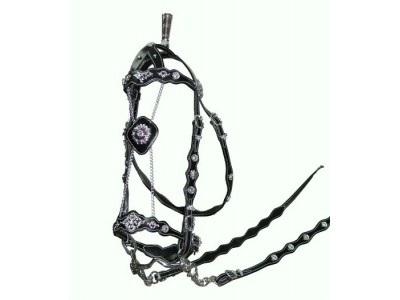 A cabeçada Portuguesa de Cortesia para freio e bridão. Esta cabeçada é cosida a branco, tem a testeira e focinheira trabalhadas. Tem 2 pares de rédeas e fivelas barrocas.