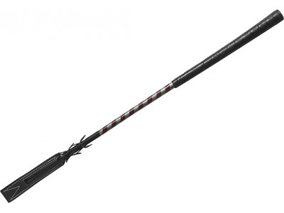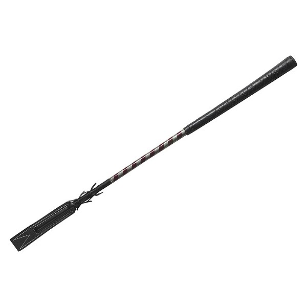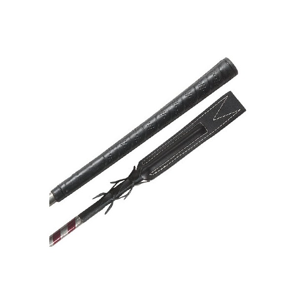 Whip & Go Plume, Corpo de fibra de vidro coberto com uma espiral de PVC bicolor. Borracha golfe longa alça tipo de toque de couro aberta larga e plana. Franjas de couro.