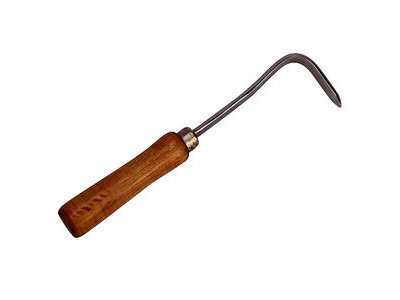 Com cabo de madeira.