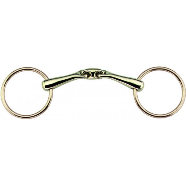 Isto garante que quando as rédeas são puxadas, o elo arredondado assenta completamente na língua sem comprimir em excesso.