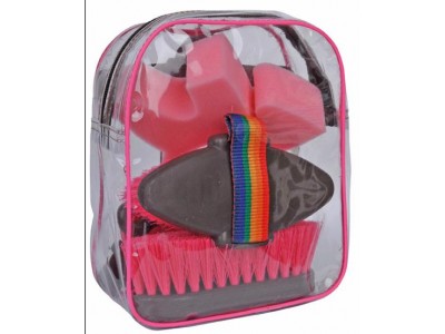 Mala com material de limpeza.