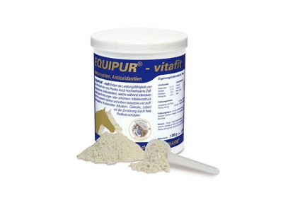 EQUIPUR - vitafit promove o desempenho e o bem-estar do cavalo através altamente eficazes vitaminas proteção celular, aminoácidos essenciais e zinco. Estes fortalecer o sistema imunológico e fornecer uma proteção de célula ativa para músculos e articulações. Uma performance bem sucedida e duradoura do cavalo só pode ser alcançado por uma proteção de célula eficaz.