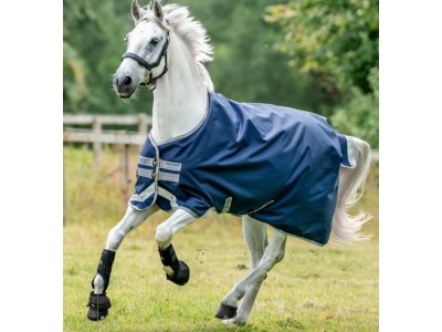 Esta manta/cobrejão de proteção oferece proteção impermeável e altamente respirável num exterior robusto em poliéster 1200D com um aconchegante enchimento de fibra Termo colante intercalado e acabamento com um forro que realça o brilho para um acabamento luxuoso que o seu cavalo irá adorar.