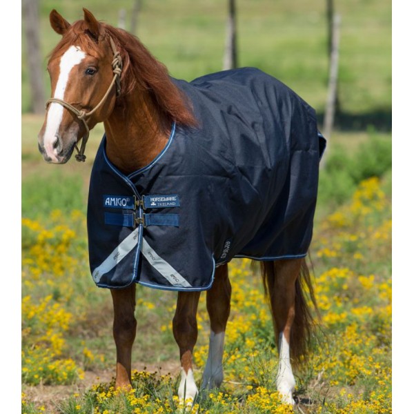 Versátil e consistentemente fiável, a manta Amigo® Bravo 12 Original Turnout (pesado 400 g) é o nosso clássico Amigo® impermeável e altamente respirável, combinando uma parte exterior resistente de poliéster 1200D com um enchimento de fibra Termo colante técnica de 400 g para máxima retenção de calor sem peso.