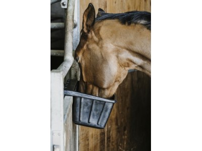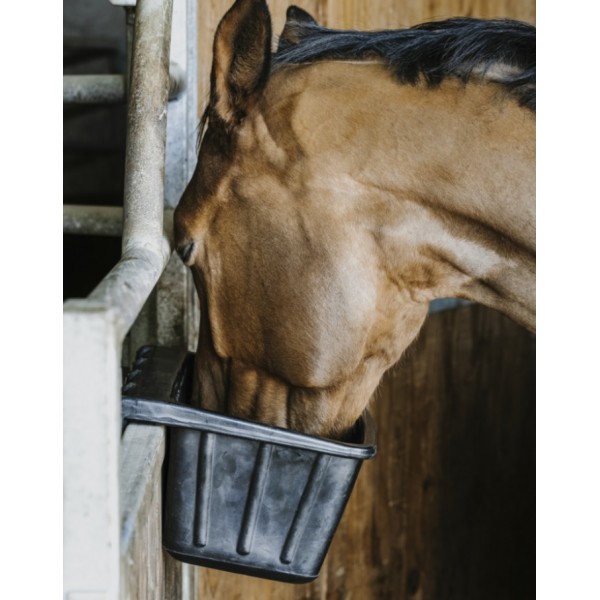Utilizado tanto no estábulo como durante as suas competições, o alimentador de borracha Hippo-Tonic pode conter até 14 litros de ração.