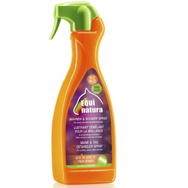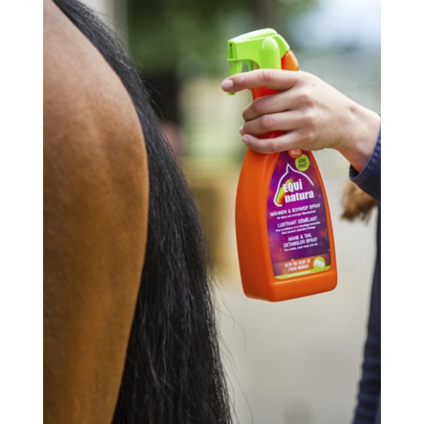 Graças à sua fórmula enriquecida com extratos naturais de laranja, o Equinatura Detangler deixa a pelagem brilhante e sedosa, realçando a crina e a cauda.