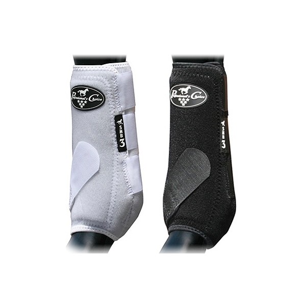 Trata-se do mais recente lançamento da Professional Choice no mercado. A SMB-3 TM é um híbrido entre as caneleiras SMB ELITE E SMBII. Tratamento anti-micróbios. O exterior é construído com a assinatura de escolha do profissional à base de neoprene. Juntamente com um forro Ultrashock TM, o SMB-3 TM protege o osso da canela, tendões e tecidos moles, ao absorver energia de impacto do casco sobre o solo. A cinta não privativas de liberdade se estende um pouco mais sobre cada impacto do casco, permitindo o movimento do tornozelo completa, ajudando a eliminar a hiperextensão do boleto. A SMB-3 TM está cortado na parte inferior da frente para permitir o ajuste apropriado, quando utilizado com cloche da Professional´s Choise. Também tem um bordo ligeiramente elásticotanto na parte superior como a inferior que oferece mais ajustamento, o que impede que entre a sujidade. Devido à sua forma e elasticidade, o mesmo pode ser utilizado tanto nas mãos como para os pés.