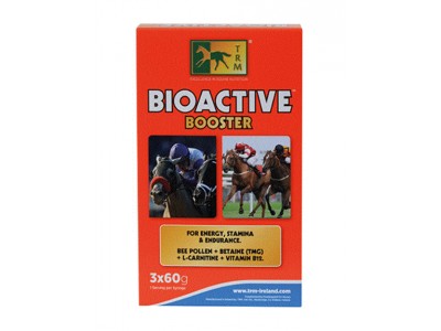 BIOACTIVE contém vitamina B12, que estimula o apetite e ajuda a manter os glóbulos vermelhos. É uma combinação cientificamente formulada de ingredientes ativos naturais. Cada um deles foi selecionado pelas suas propriedades individuais como fonte de energia e vitalidade. Este produto combina pólen de abelha, TMG, L-Carnitina e vitamina B12 numa seringa doseadora prática, para garantir que o seu cavalo dura muito tempo.