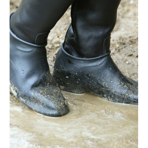 Flexível, fácil de tirar, anti-derrapante exclusivo, borracha, lavável natural. Ideal para concurso em tempo de chuva, para não sujar ou danificar as botas. Cor: preto.