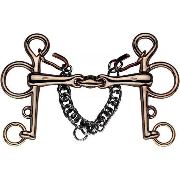 Isto garante que quando as rédeas são puxadas, o elo arredondado assenta completamente na língua sem comprimir em excesso.