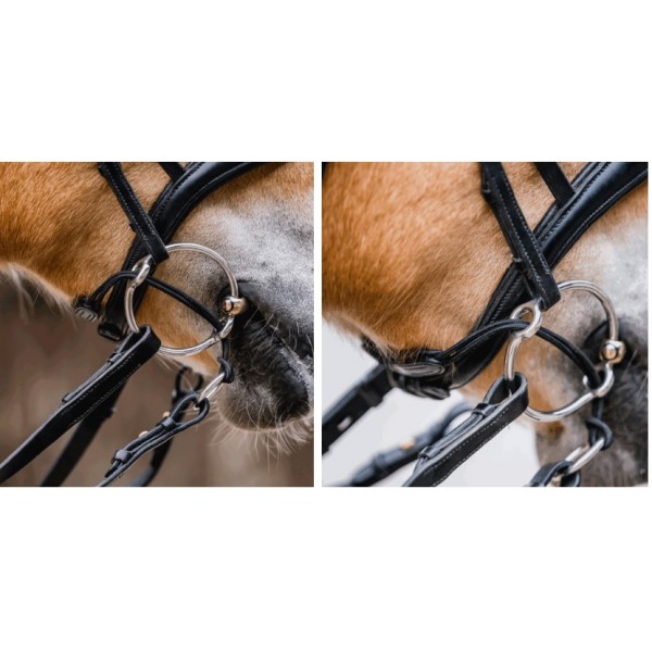 - Geralmente é usado com dois pares de rédeas para regular o impacto.